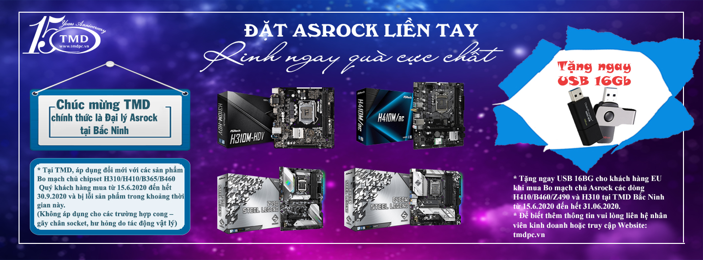 1. Từ ngày 15.6.2020 đến hết 31.6.2020, khách hàng EU khi đặt mua sản phẩm main Asrock các dòng H410, B460 và Z490 tại TMD sẽ nhận ngay phần quà đi kèm là 01 USB 16Gb.
