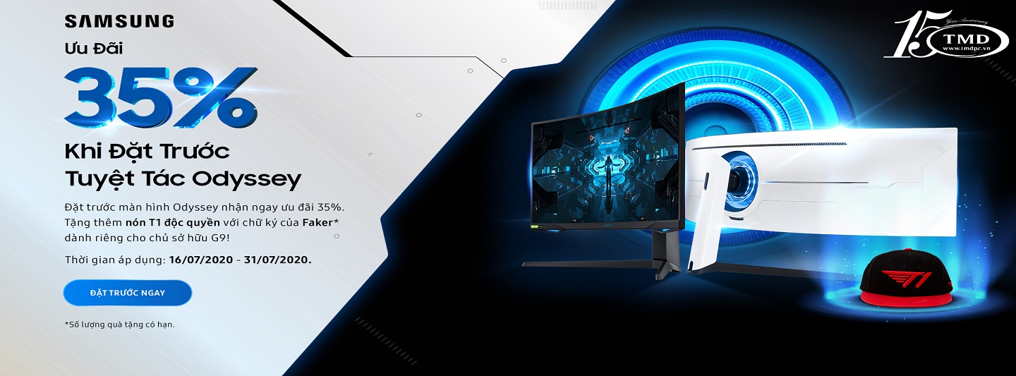 Nội dung chương trình: Trong thời gian khuyến mãi, Quý khách hàng đặt trước màn hình máy tính Samsung Odyssey G9 nhận ngay ưu đãi 35%. Tặng thêm nón T1 độc quyền với chữ ký của Faker* dành riêng cho chủ sở hữu G9.