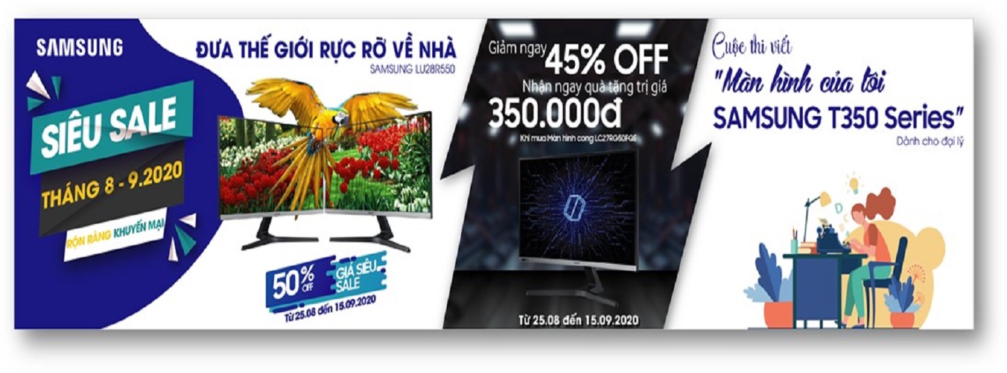 Đón năm học mới, sắm ngay màn hình máy tính SAMSUNG với mức giá HOT tại chương trình "SIÊU SALES THÁNG 8-9/2020 CÙNG SAMSUNG" - Chương trình khuyến mãi mà TMD và thương hiệu SAMSUNG gửi tới Quý Khách hàng. Cụ thể: