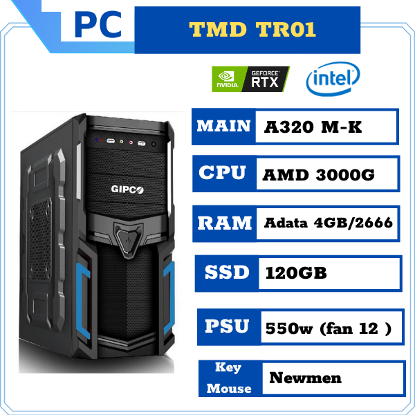 2.1. Máy tính văn phòng TMD TR01 (Main A320M|CPUAMD 3000G|Ram 4GB| SSD 120GB|PSU 550W|Case GIPCO GIP)