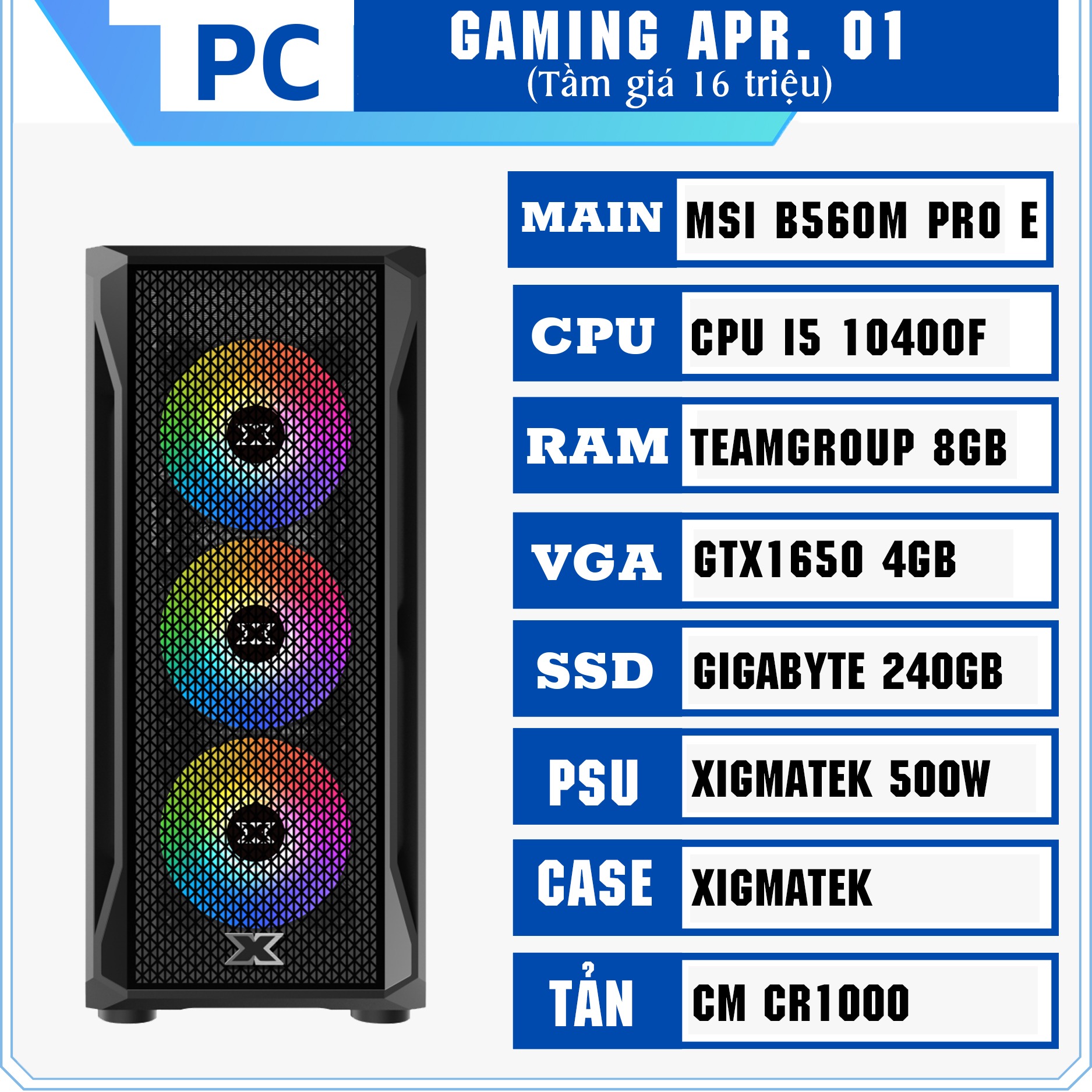1. PC Gaming Apr.01 (i5 10400F/Ram 8GB/ VGA 1650/ 240GB)