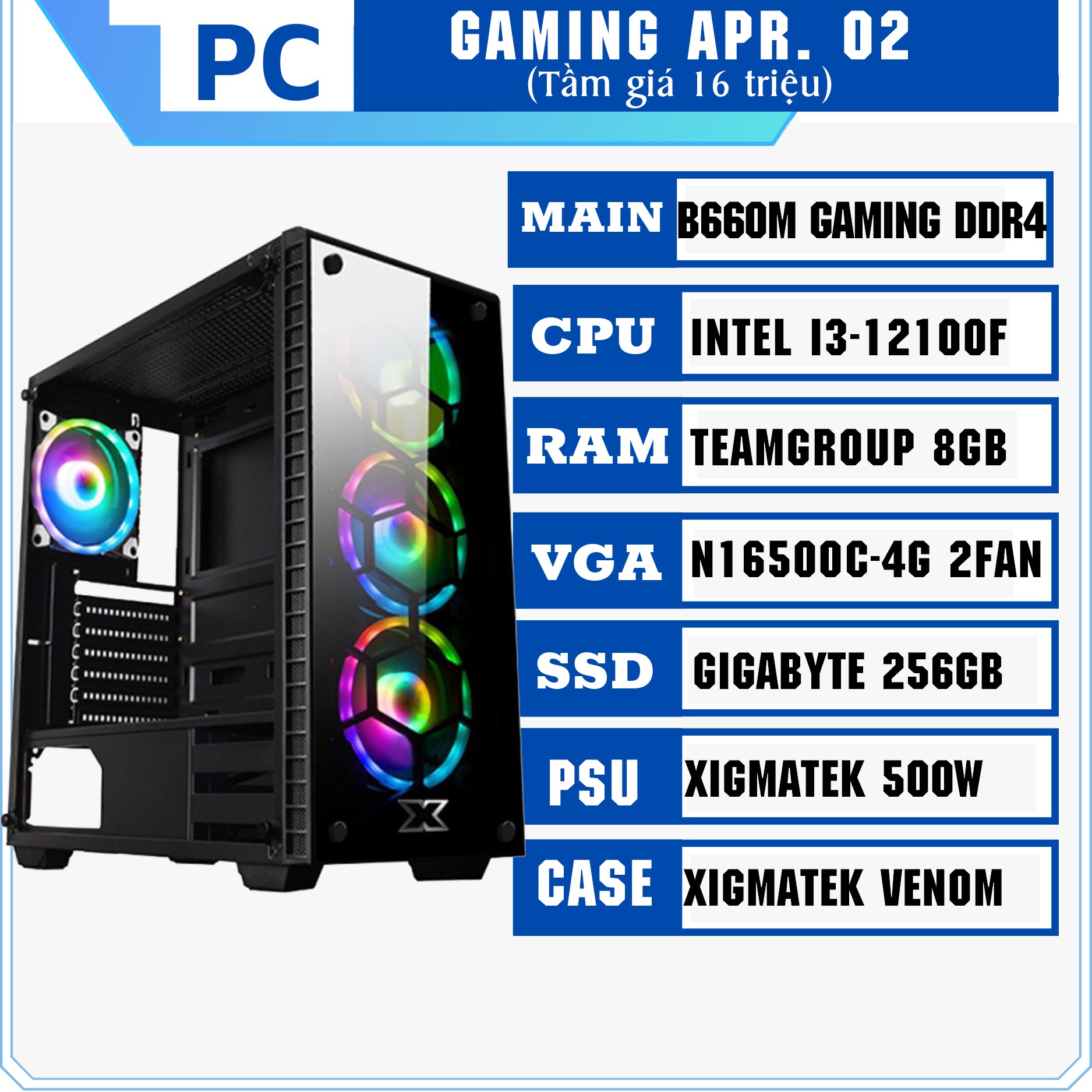 2. PC Gaming Apr. 02 (i3 12100F/Ram 8Gb / N1650OC / 256GB)