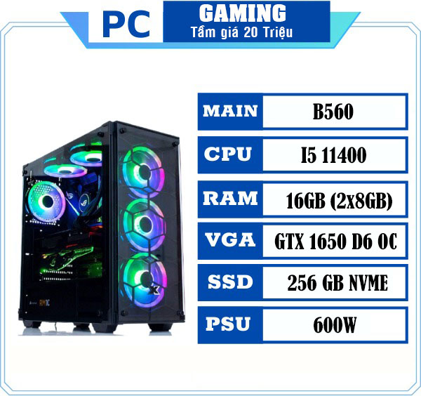 Ở đây chúng ta thay vì sử dụng một con CPU phiên bản F dành riêng cho việc chơi game mà sử dụng phiên bản nonF sử dụng được đa tác vụ hơn. Với việc sử dụng CPU có iGPU sẽ hỗ trợ bạn rất nhiều không chỉ trong việc chơi game mà còn giúp bạn trong quá trình Livestream, Đồ Họa cũng như Render mà giá 2 bản này chỉ chênh nhau vài trăm nghìn thì rất đáng để lựa chọn. Mainboad B560 là điều tối thiểu khi sử dụng một con CPU i5 và thêm lý do để lựa chọn Mainboad này là vì nó có thể bật XMP cho ram. Ram trên là 16GB chạy dual channel với bus 3200 nên sẽ rất phù hợp để đi cùng Mainboad B560. Đối với bộ PC Gaming tầm giá trên 20 Triệu, TMD Computer sẽ khuyến mại giảm 1 Triệu đồng cho bạn. Chi tiết TẠI ĐÂY.